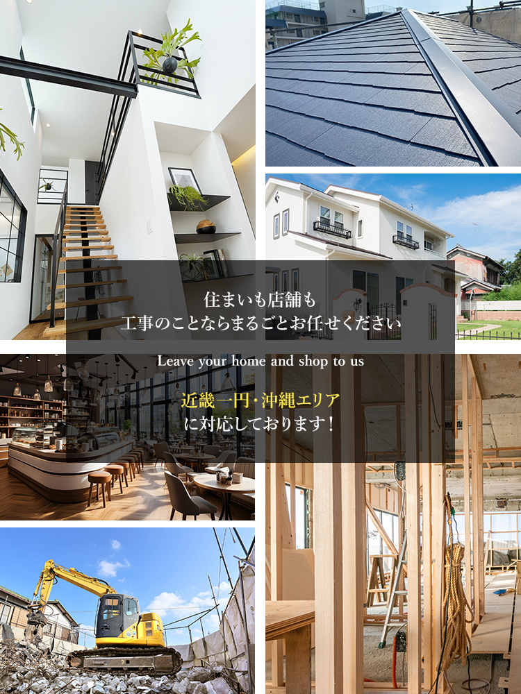 屋根・外壁・床下から、内装・店舗・解体工事まで。